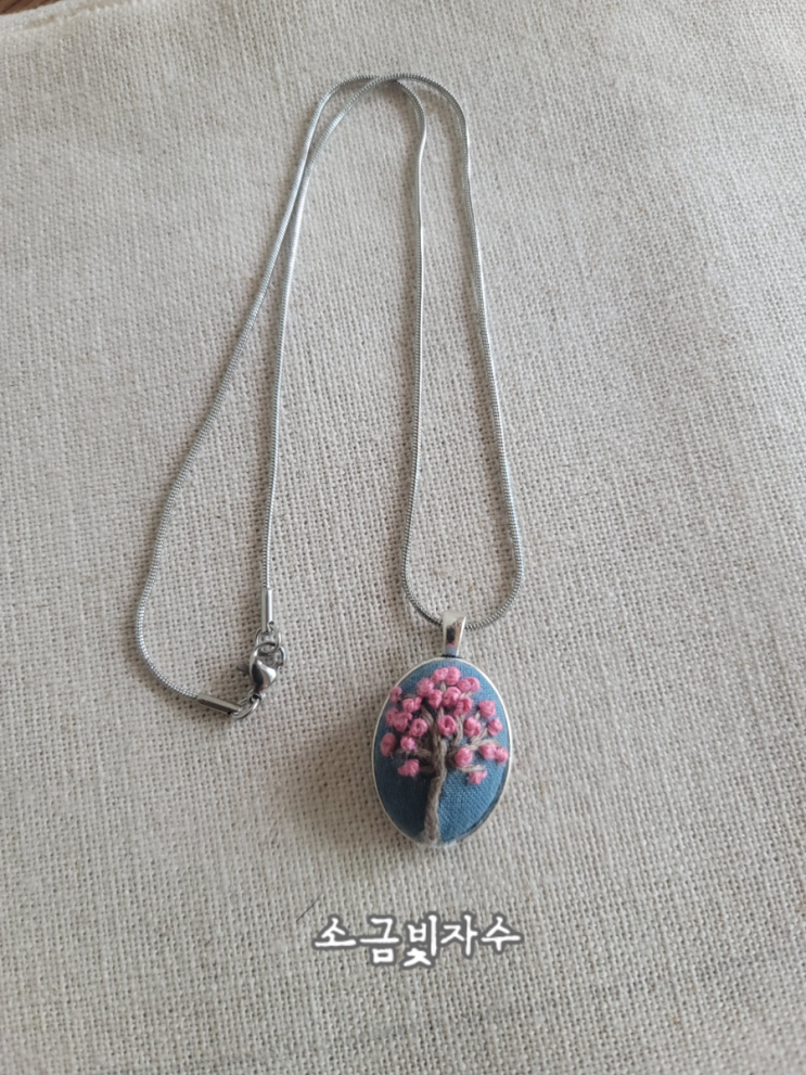 살구꽃 자수 목걸이
