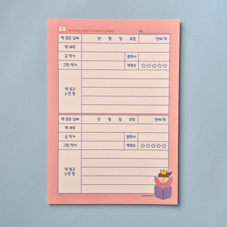 초등 독서기록장 간단한 양식 저학년 짧은 그림책 독후감 노트 뜯어쓰는 독서마라톤 독서통장