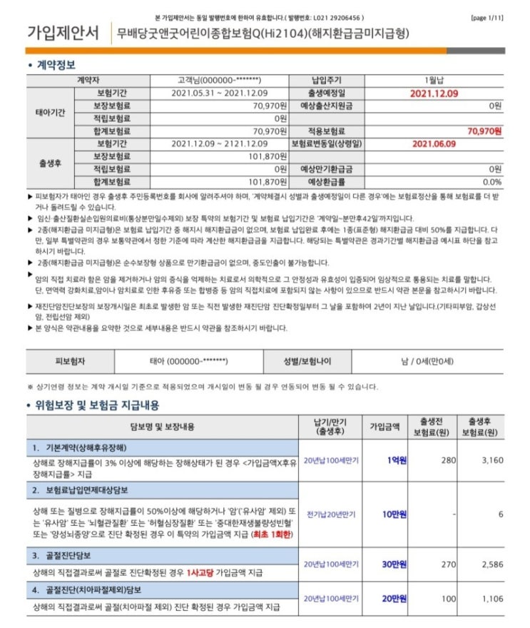태아보험을 저는 11주 쯤에 현대해상에서 가입했어요! 1차 기형아검사 전에 가입하는게 좋다고 해서 부지런...