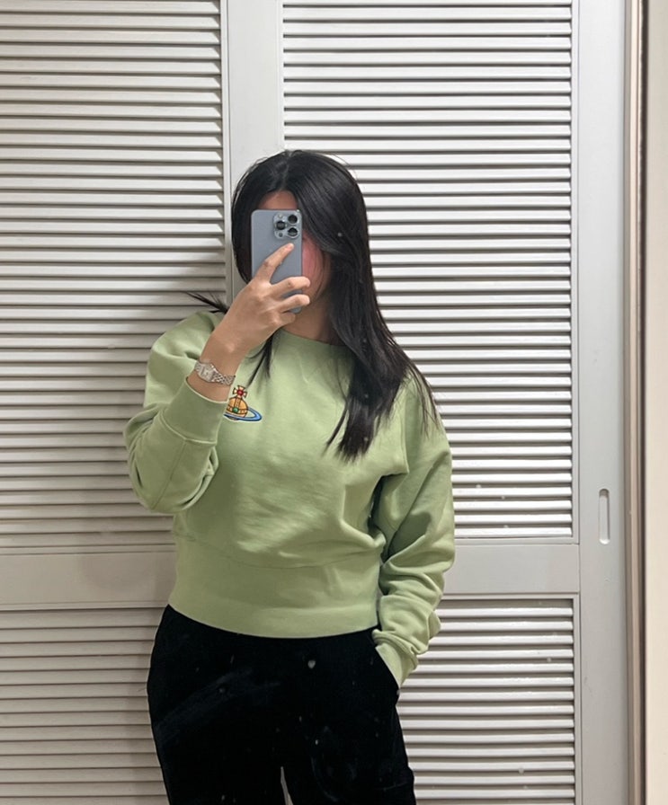 비비안웨스트우드 로고 맨투맨 스웻셔츠 (에스아이빌리지 구매, 가격, S사이즈 착용샷)
