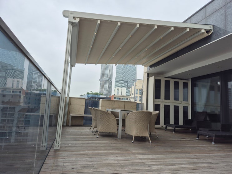 시스템 파고라 설치 | 서울 옥상 공간을 바꾸는 전동 에어리어 시공기