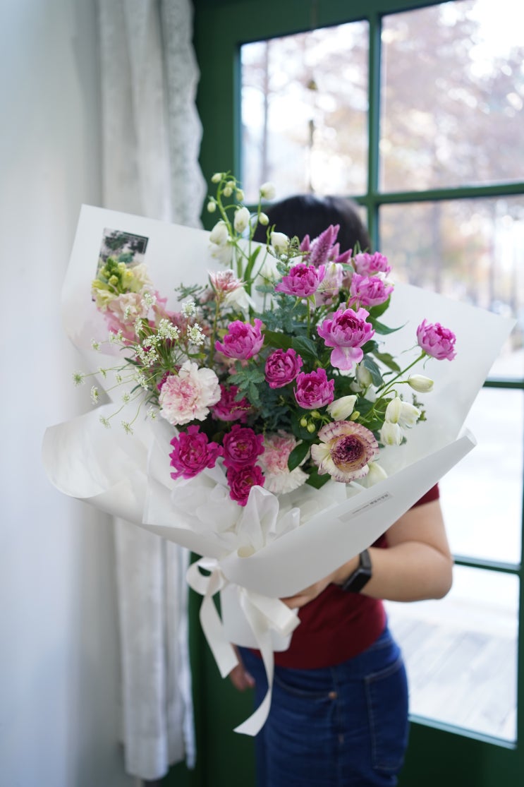 [운양동꽃집/김포예쁜꽃집/운양역꽃집] 포근한 꽃의 질감과 담대한 봄꽃 나무가 어우러진 해밀의정원 기념일 꽃다발