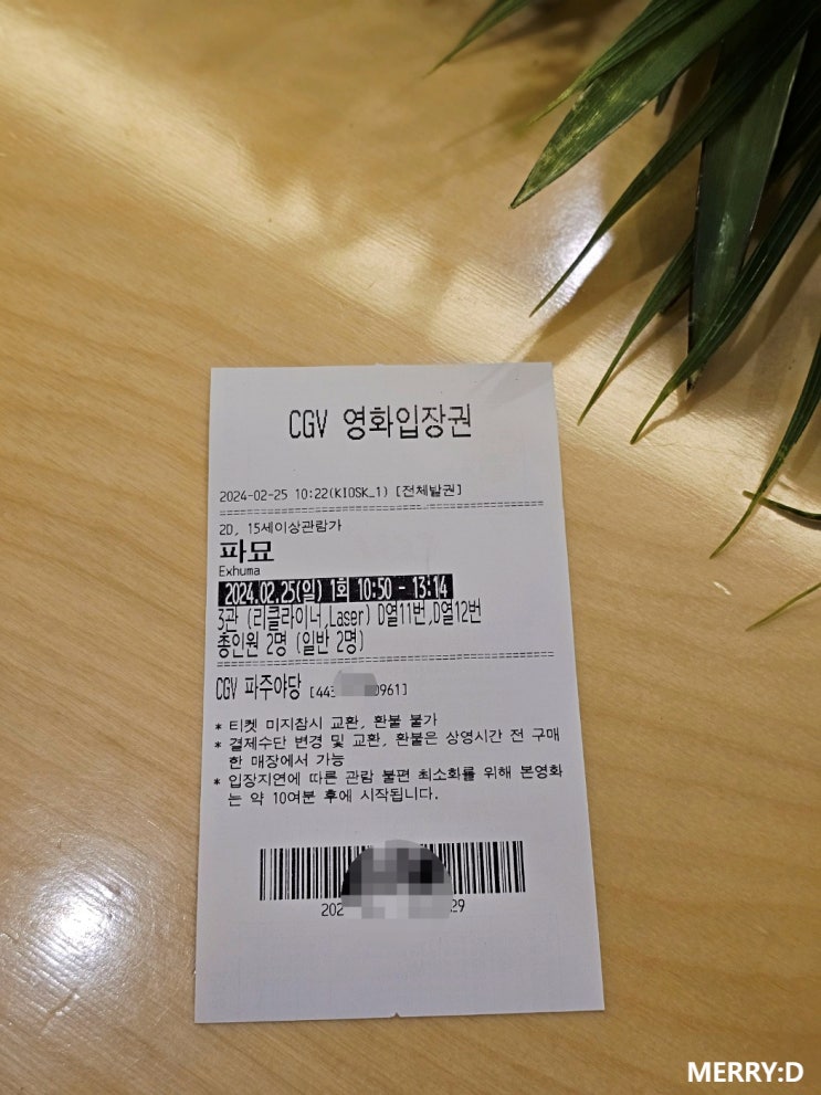 동탄 리클라이너 영화관 CGV 그랑파사쥬 파묘 보고 왔어요