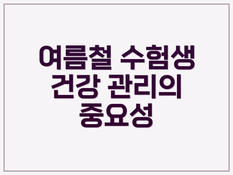 수험생 여름 건강, 동의보감 속 체력 관리법과 생활 지침 무더운 여름, 수험생들은 체력 저하와 집중력 감...
