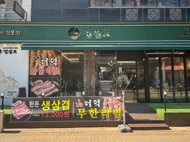 안산 고잔신도시 맛집 더덕구이 삼겹살 껍살로
