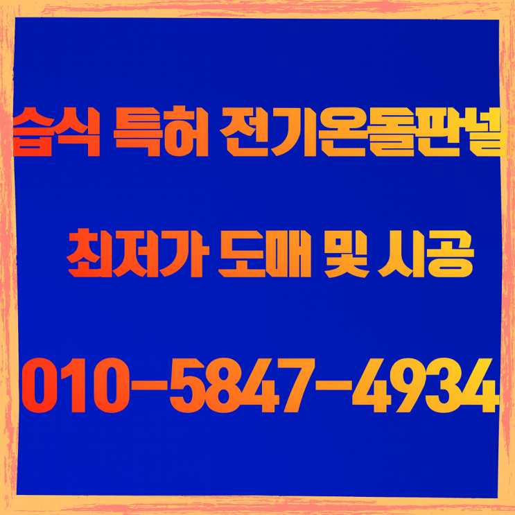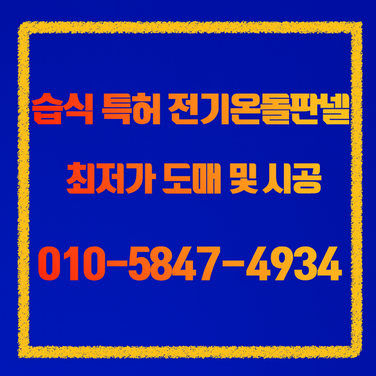 안녕하세요^^ 글로벌 최초! 초절전 습식 특허 전기온돌판넬을 개발한 (주) 태양산업 습식전기온돌판넬 입니...