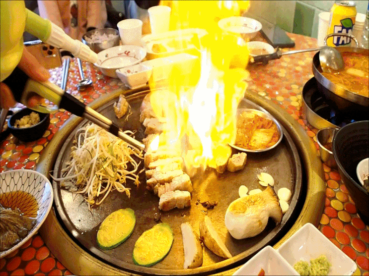 화려한 불쇼를 자랑하는 철판구이 전문점 상갈동 맛집 고철상 세트메뉴 다양한 부위를 먹을 수 있어 좋더라...