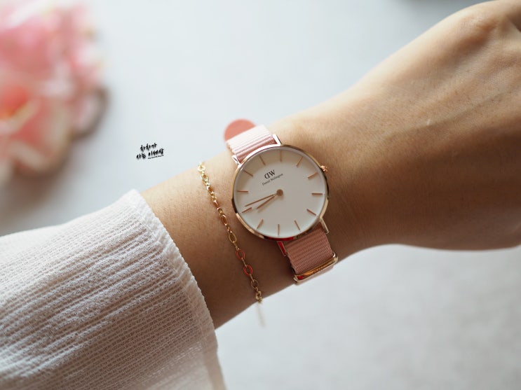 다니엘 웰링턴 로즈핑크 나토 시계 체리블러썸 리미티드 에디션 로즈워터 예쁨주의