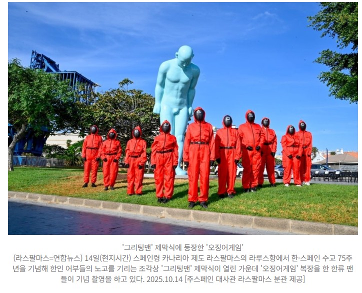 스페인 카나리아제도에 한인어부 노고 기리는 '그리팅맨' 2025.10.14. '그리팅맨' 제...