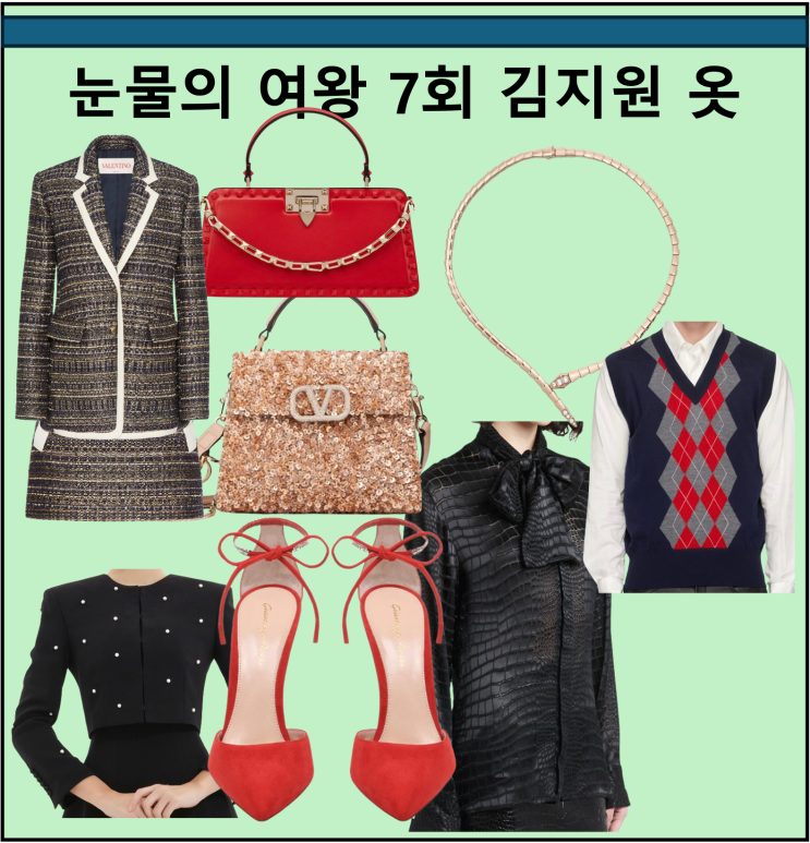 눈물의 여왕 7회 김지원 옷 발렌티노 블레이저 스커트 투피스 핸드백 가방 불가리 목걸이 귀걸이 반지 아미 조끼 니트 베스트 가죽 셔츠 하이힐 자켓 7화