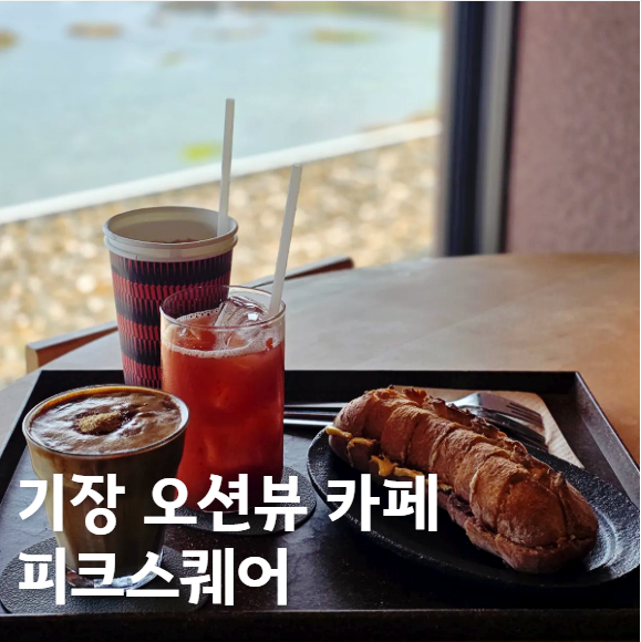 기장 오션뷰 카페 피크스퀘어 드라이브 바다멍 흑임자라떼 조합