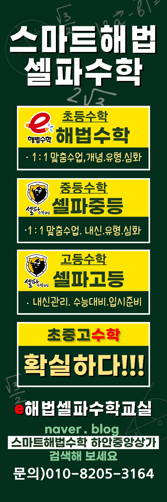 안녕하세요 스마트해법셀파수학 하안중앙상가점 입니다 본원에 다니는 고1 여학생은 중학교 다닐적에 친구...