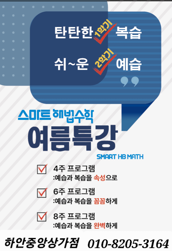 2023년 스마트해법수학 여름특강수업 올해도 2학기를 미리 준비하고 1학기에 부족했던 과정을 채워줄수 있...