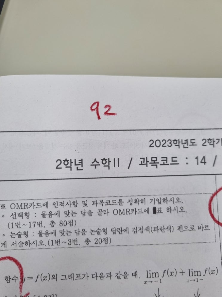 운산고2 수학 2학기 1차 지필고사