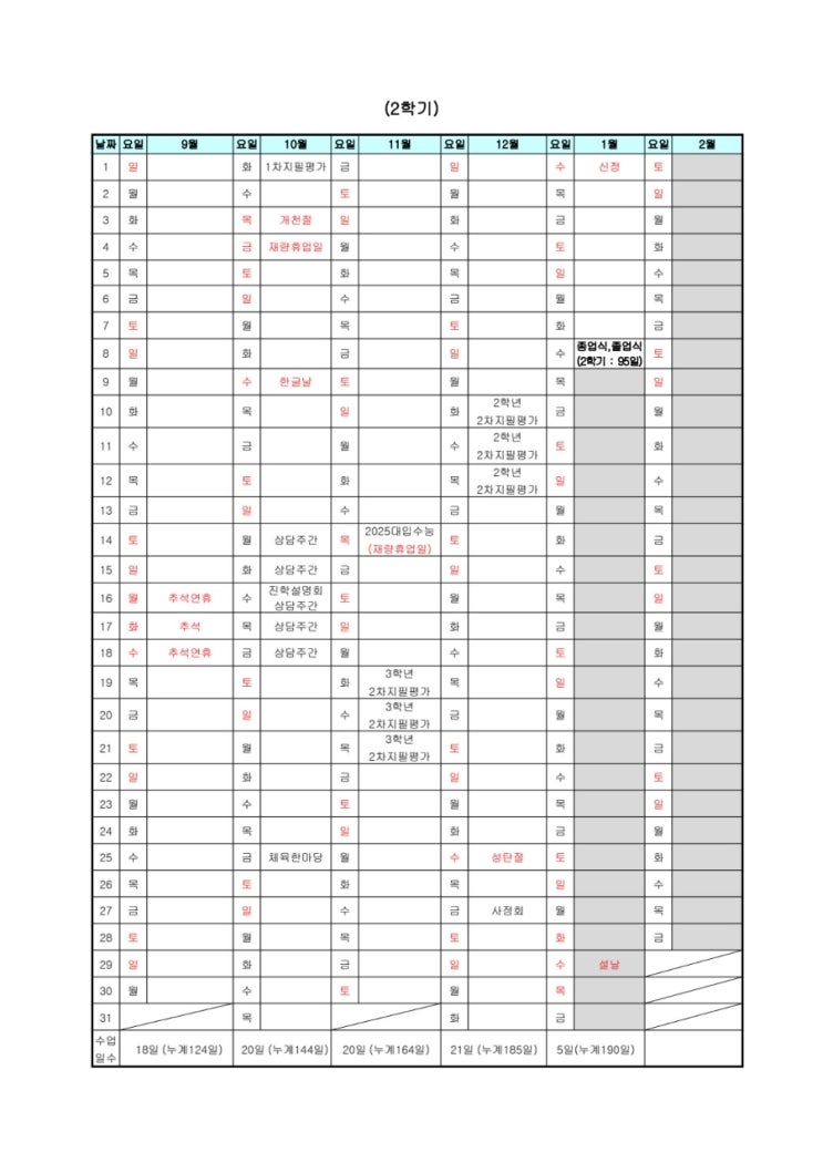 2024년 가림중학교 학사일정표