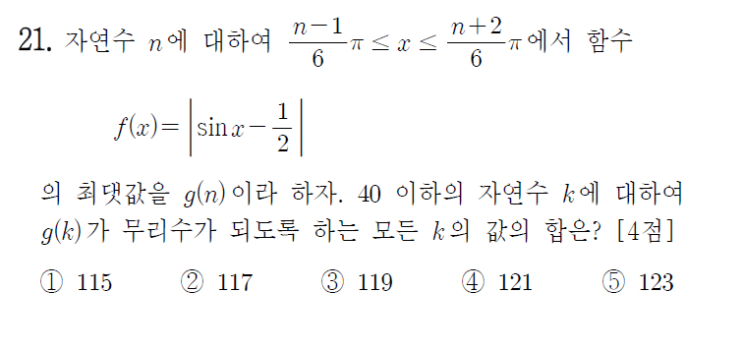 다소 학생들에게는 생소하게 어렵게 다가올수 있는 문제라도 생각이 된다 접근법 : 절댓값이 있는 삼각함수...
