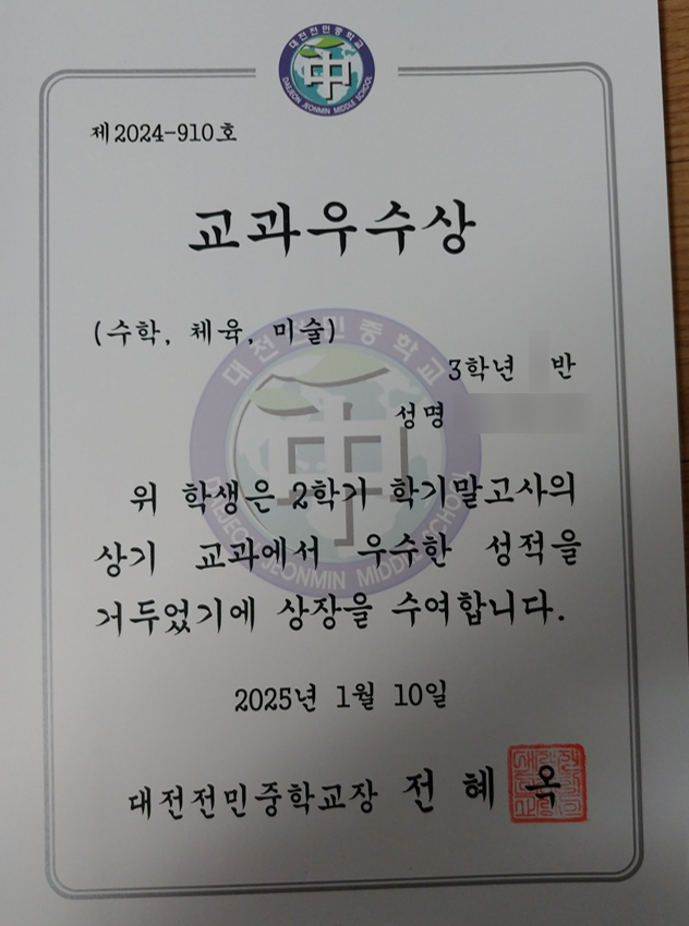현재 전민중 3학년 학생들은 수업 시간에 모의고사를 풀어보고 있어요. 수학, 과학, 국어, 한국사 등 3월 ...