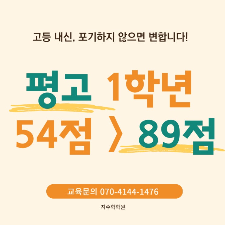 (지수학학원) 평택고 내신 급상승 : 54점에서 89점으로