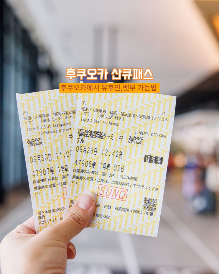 하카타역 후쿠오카 공항에서 유후인 가는법 벳부 산큐패스 구매 교환 버스 예약