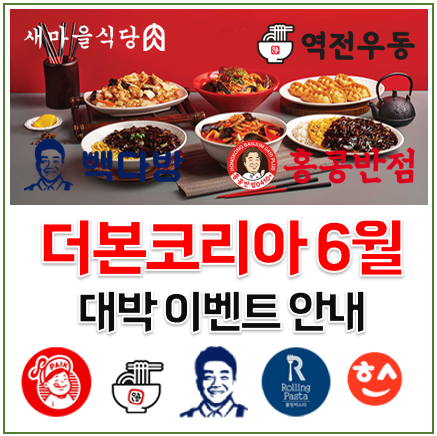 6월 더본코리아 대박 이벤트 - 빽다방 홍콩반점 역전우동