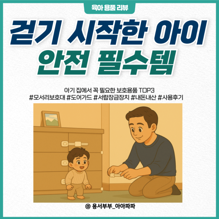 걷기 시작한 아기 집에서 꼭 필요한 보호용품 TOP3ㅣ 모서리 보호대부터 서랍 잠금장치 솔직 후기