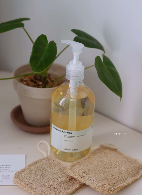 친환경주방세제 어썸치킨 주방세제 천연 수세미와 사용 중