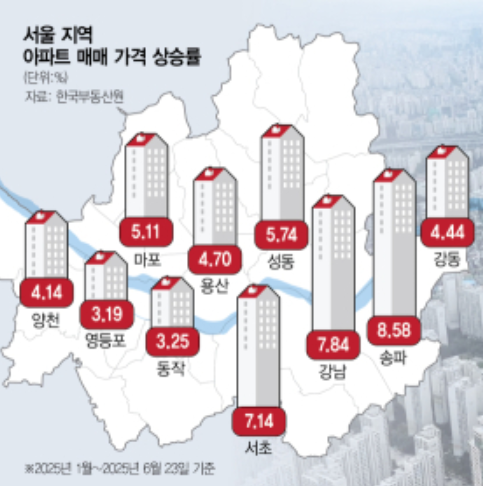 2025년 6월 28일 기사 ■ 6·27 #부동산대책 부모 도움없이 집 사기 어려워져 고가 주택일수록 대출금액 높...