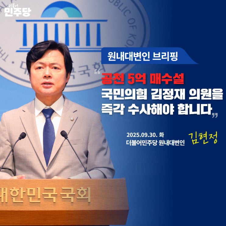 ■ 공천 5억 매수설, 국민의힘 김정재 의원을 즉각 수사해야 합니다 국민의힘 김정재 의원이 차마 입에 담...