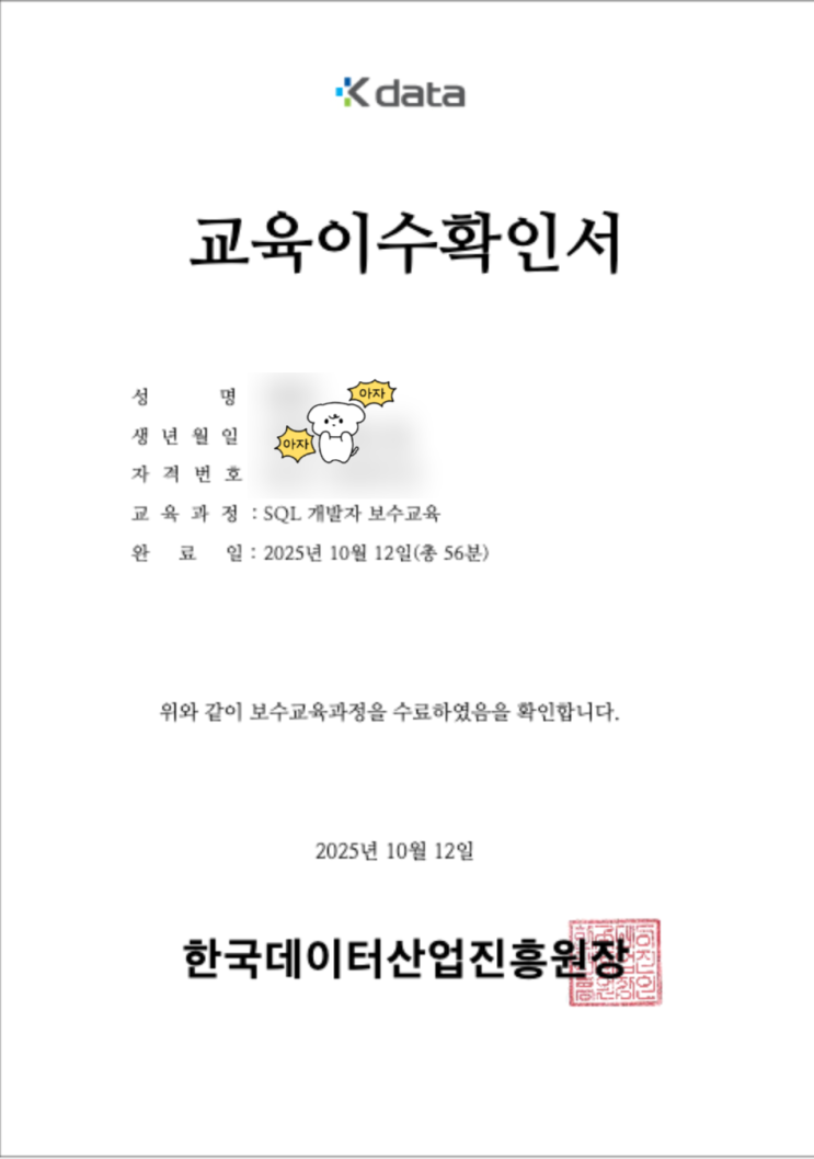 SQLD 자격증 유효기간이 만료된 사람의 보수교육 수강 - 자격증 갱신