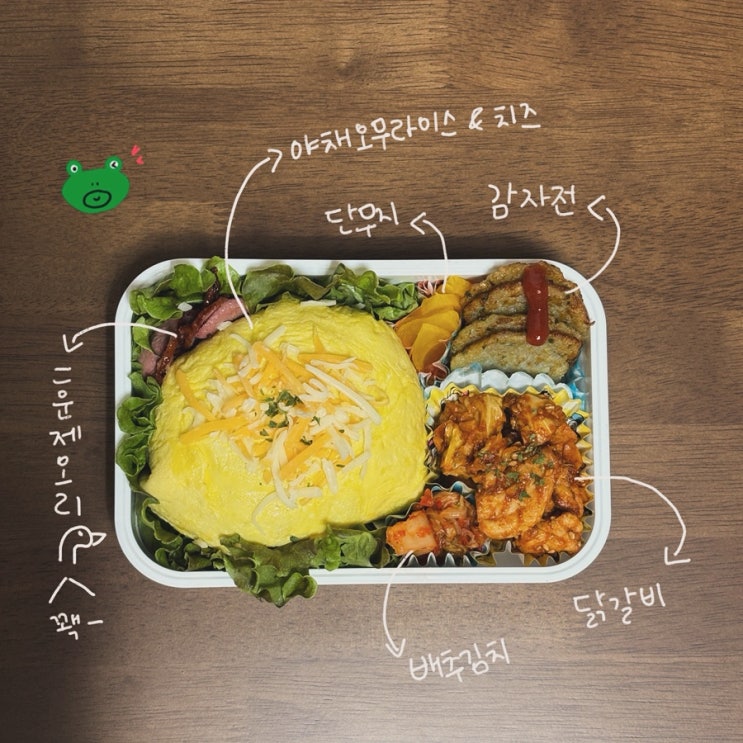 9 - 메 뉴 - 야채오무라이스&치즈 훈제오리 배추김치 닭갈비 감자전 단무지 오랜만에 만든 도시락~! 갑...