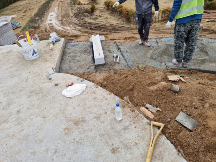 오늘은 화강암 난석 붙이기 작업을 했습니다. 하루 종일 했는데도 4명이서 5계단 만들었네요ㅋ 버림콘크리...