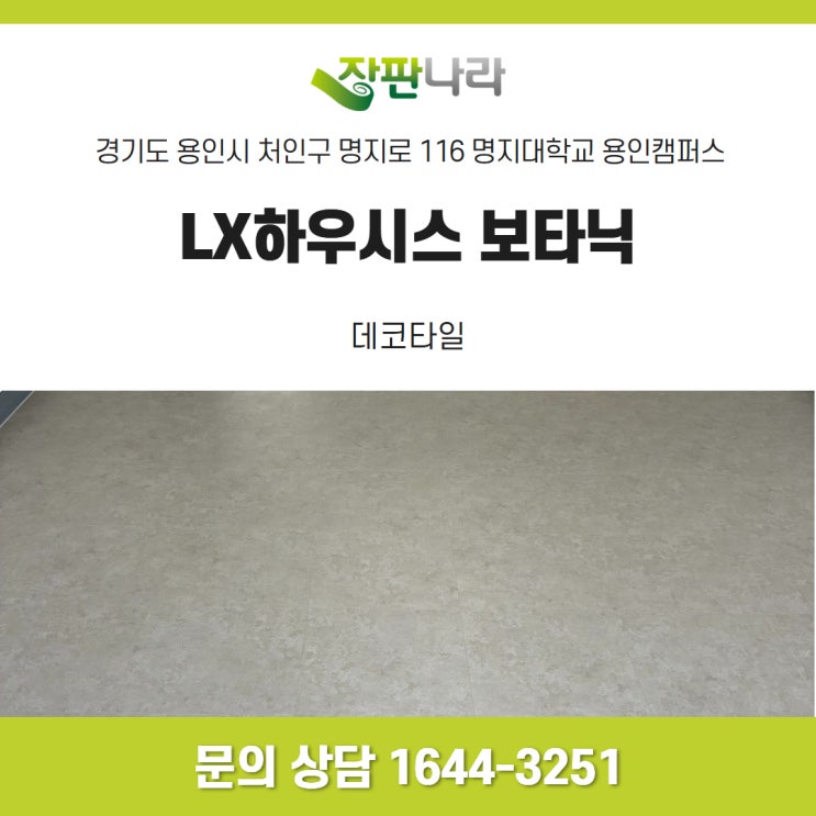 경기도 용인시 처인구 명지로 116 명지대학교 용인캠퍼스 LX하우시스 보타닉 안녕하세요. 장판나라입니다...
