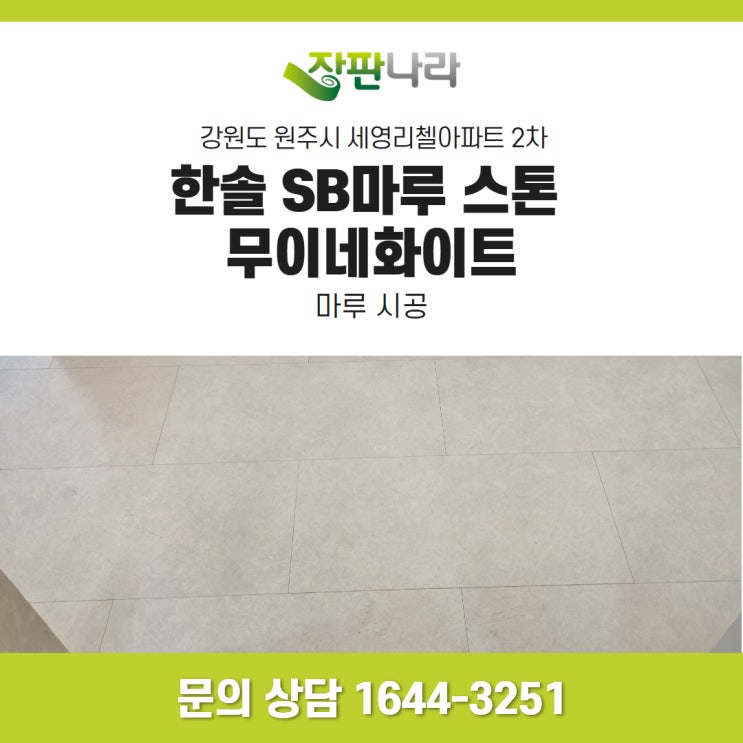 강원도 원주시 세영리첼아파트 2차 한솔 SB마루 스톤 무이네화이트 안녕하세요. 장판나라입니다. 오늘은 ...