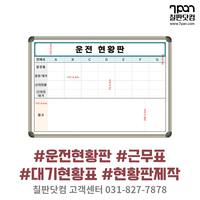 운전 현황판 맞춤 제작 - 운행 중/대기 상황을 화이트보드로 관리하세요.