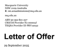 호주석사유학 맥쿼리 대학 통번역 과정 입학허가서 발급이 완료되었습니다. MASTER OF TRANS...