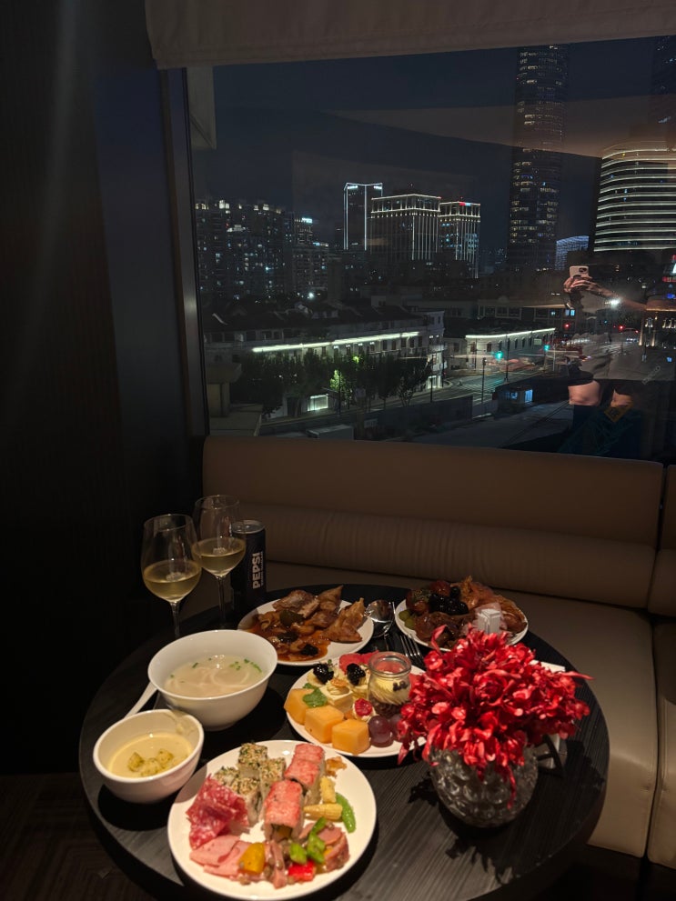 안녕하세요 저번에는 제가 상하이 하얏트 온더 펀드의 뷰를 보여드렸는데요 오늘은 클럽라운지의 해피아워...