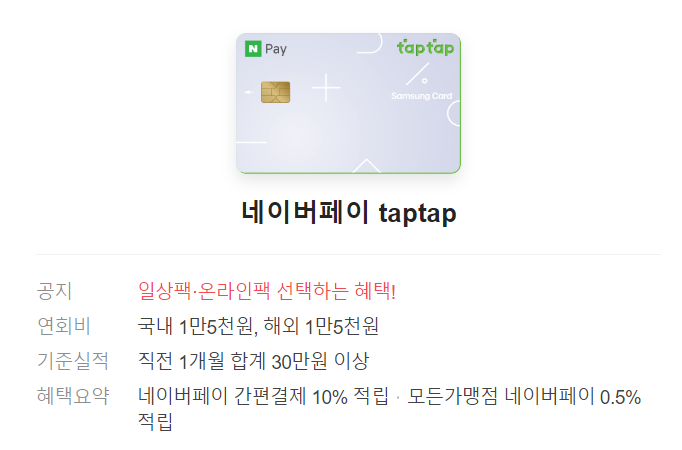 네이버페이 탭탭 삼성카드 사용후기