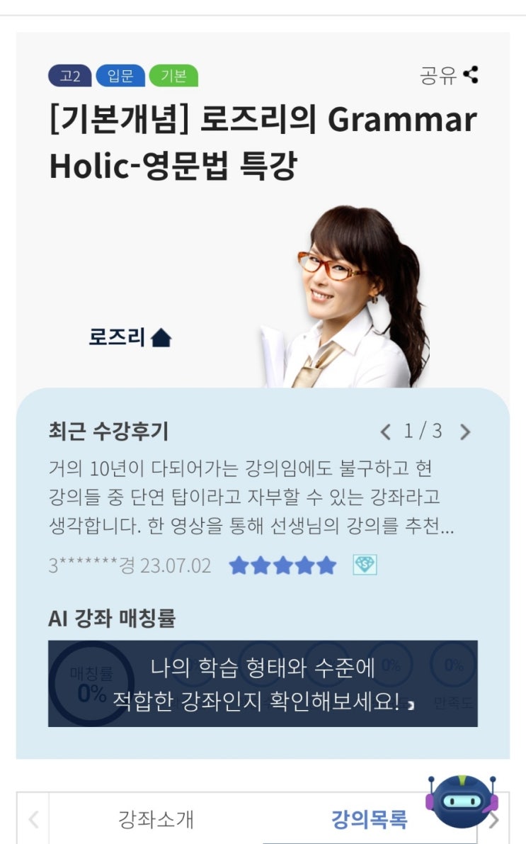 [영어 무료강의]EBSi 로즈리 그래머홀릭 (후기/현재 영어수준/특징)