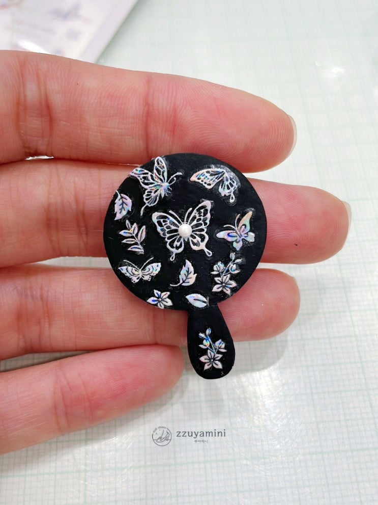 갑자기 꽂혀버린 자개 인형용 손거울을 한번 만들어 봤어요~ 원하는 모양의 미니어처 거울이 없어 클레이로...