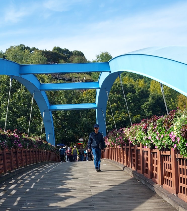 -2024.10.24일 다녀옴 완연한 가을 하늘빛에 드리운 구름 아래 파란 다리 육교를 지나 맹꽁이 전동차 있는 ...
