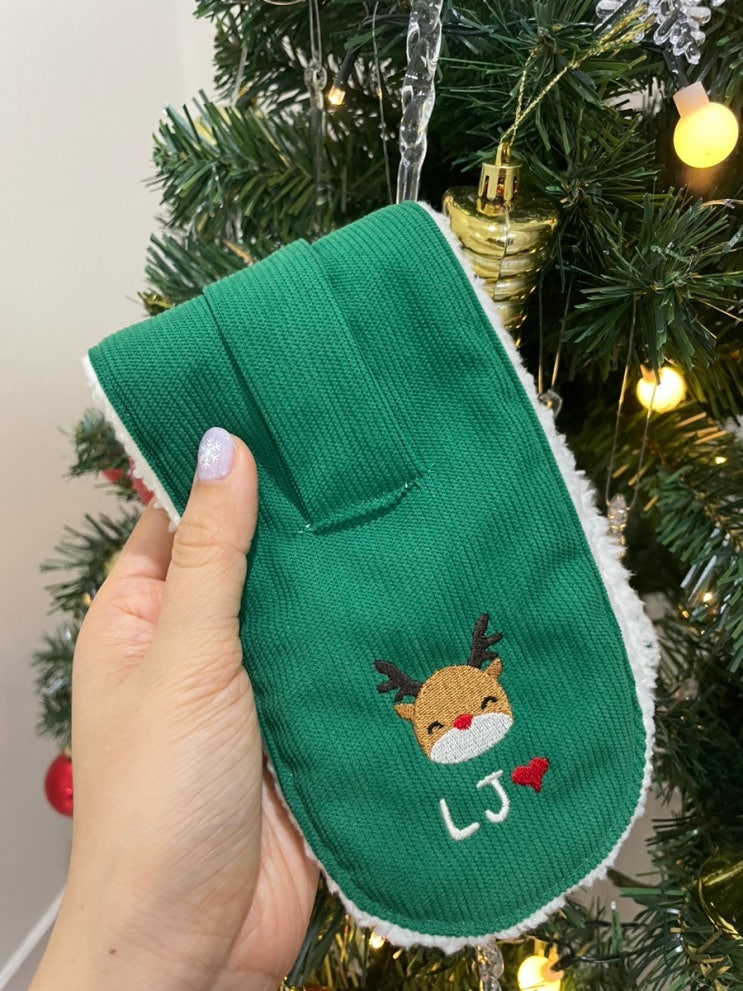 크리스마스 분위기가 물씬~ 따뜻하면서도 예쁘고 이니셜까지 새길수 있는 선물용으로도 좋은 유아목도리 만...