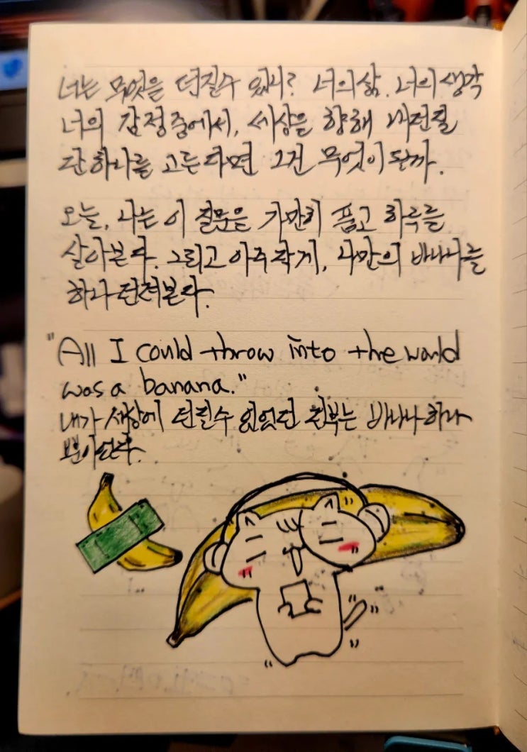 필사 한그루 그림일기. 세상에 던질 수 있는 단 하나, 바나나 (ft.wonder님)