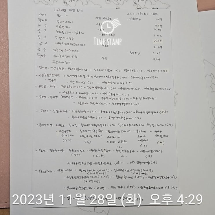 부동산공부루틴 오늘도 화이팅 #대구구별아파트#대구주요시세라인#서울구별아파트#경기도백지도 #서울구백...