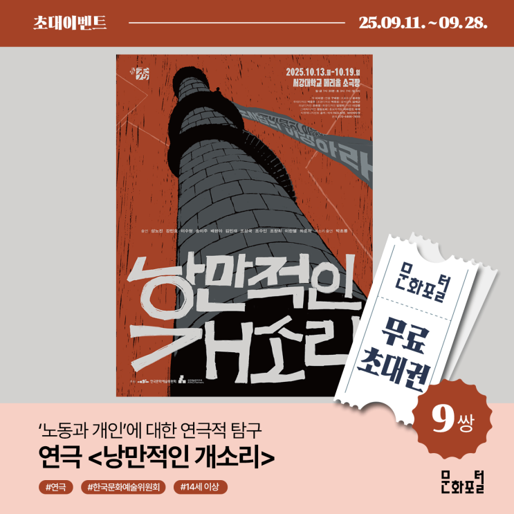 초대이벤트 :: 노동과 개인에 대한 연극적 탐구, 연극 <낭만적인 개소리> (~9/28까지)