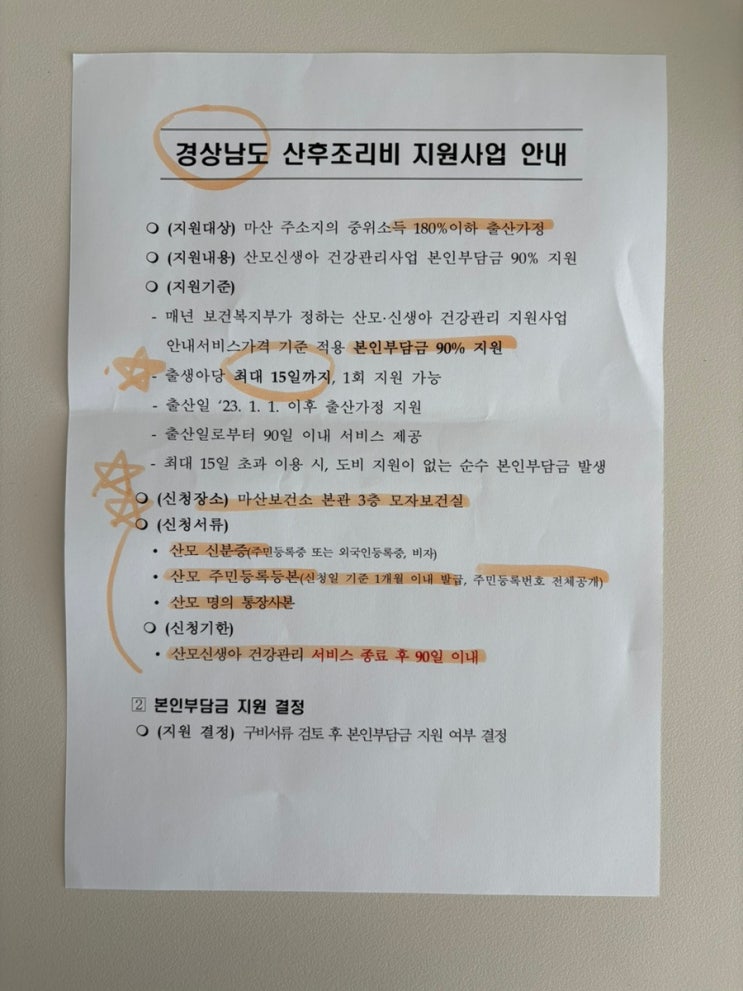 창원 산후도우미 신청방법 본인부담금과 환급금 마산보건소 방문