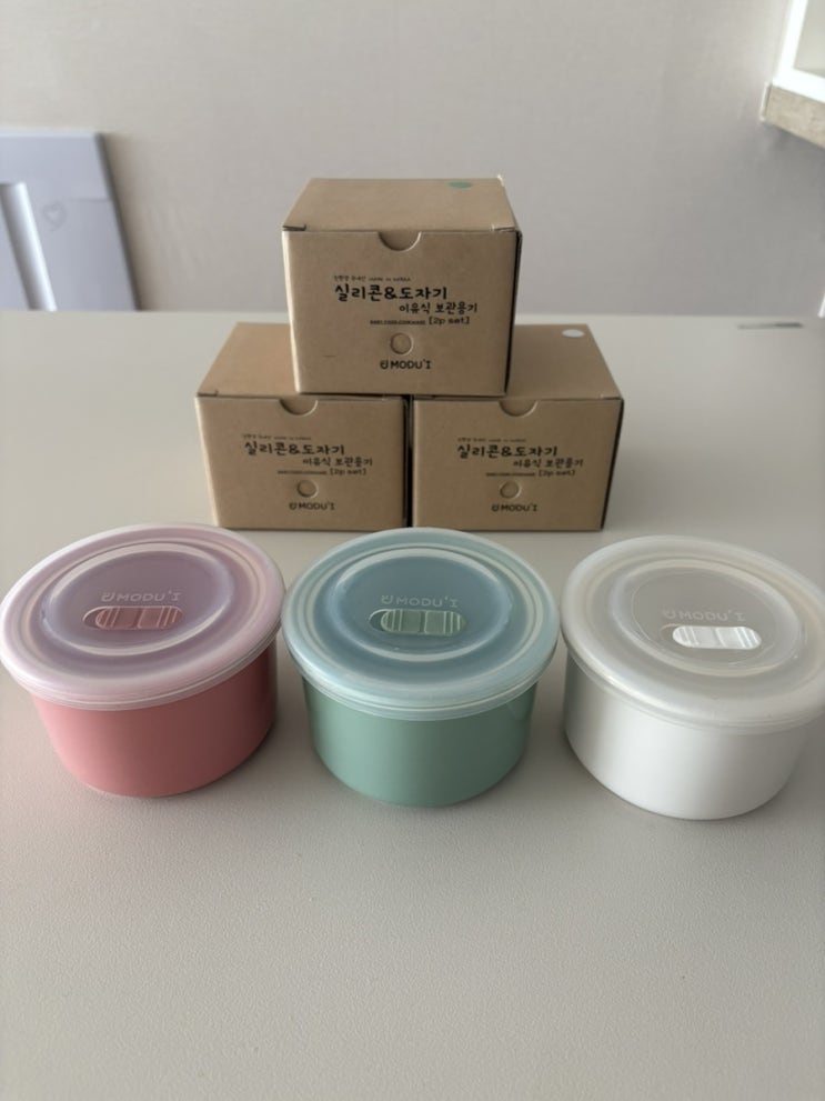 전자레인지 사용 가능한 블루마마 모두아이 도자기 이유식 보관 밀폐용기