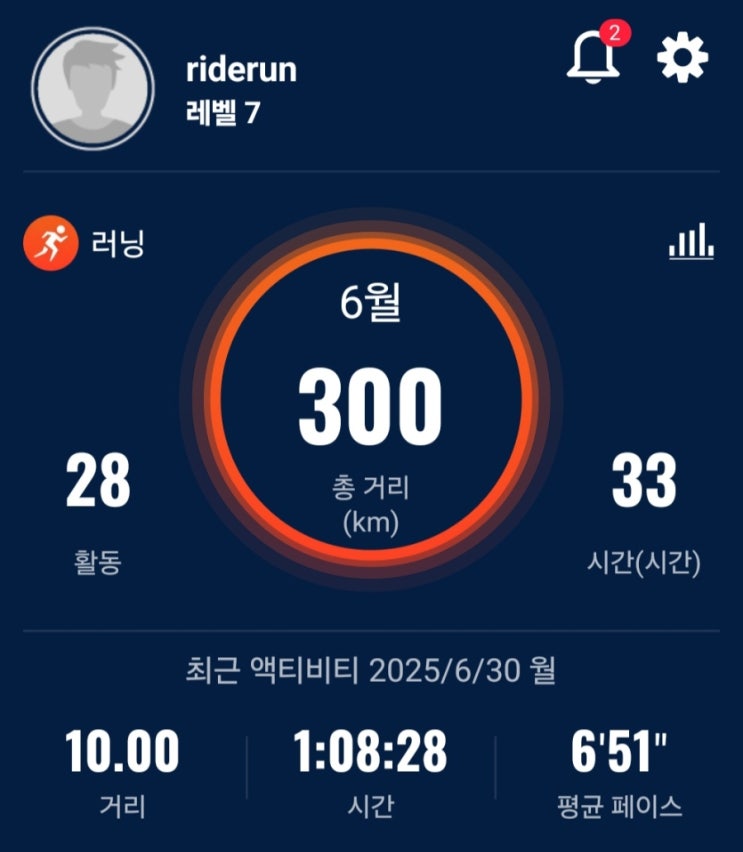 6월이 지났다. 6월의 마지막 날인 어제 아침에 일어나 6월 러닝 마일리지를 확인하니 290km. 딱 10km를 뛰...