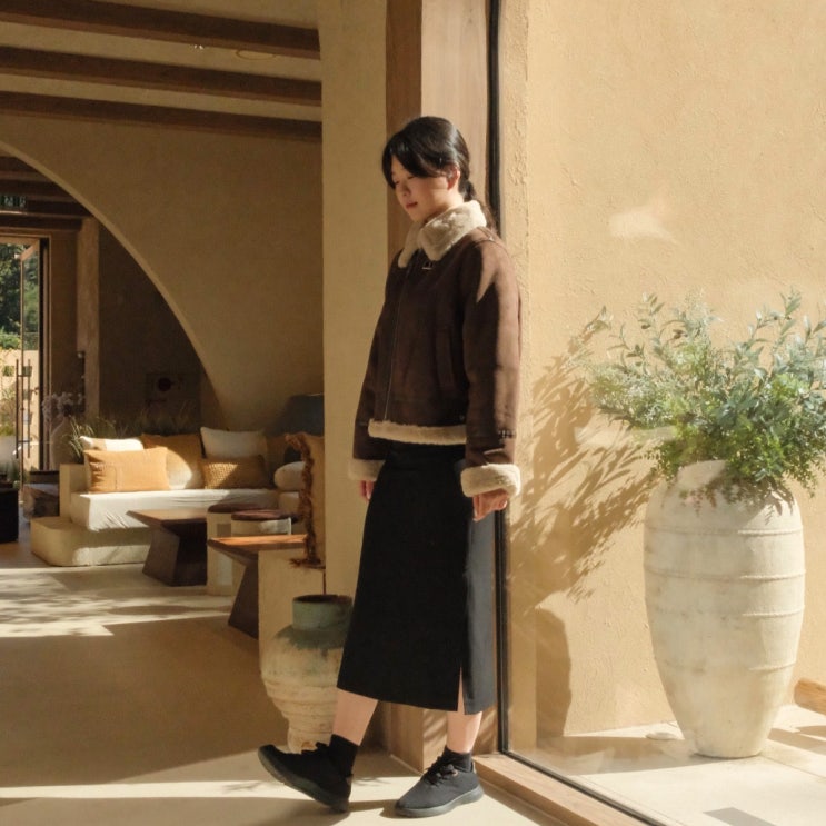 스파오 퍼배색 무스탕 추천 겨울 코디 여성 무스탕 넾다세일에서