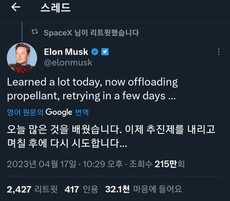 #스페이스엑스발사 엘론 머스크에 대한 평가는 호불호가 있으나, "실패를 대하는 그의 자세" 에...