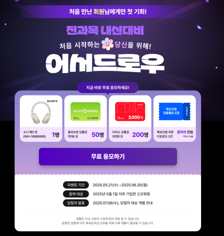 전과목내신대비 족보닷컴 신규가입 어서드로우 혜택